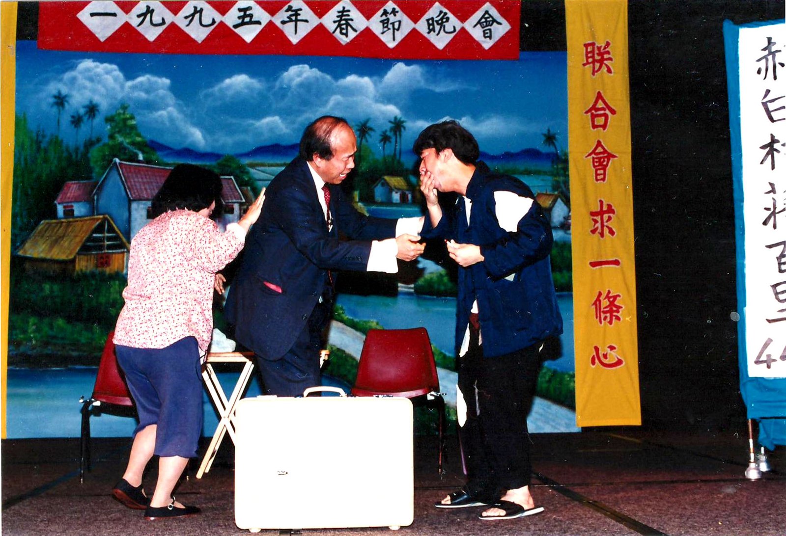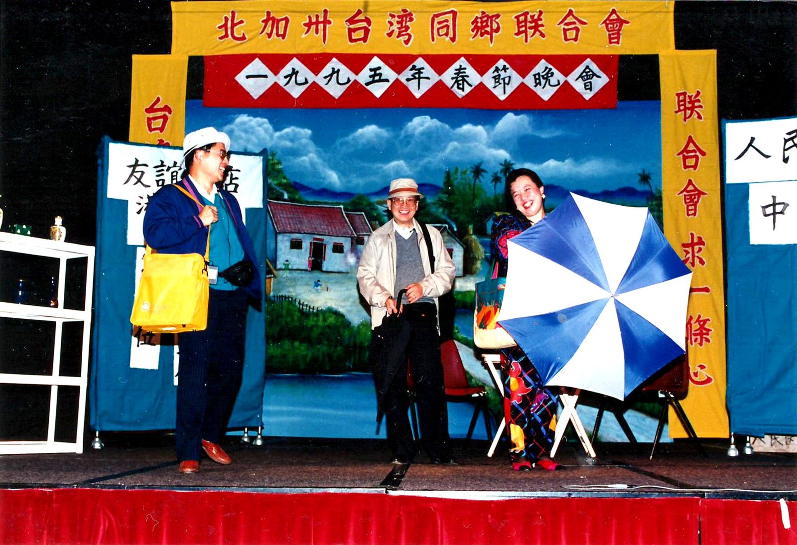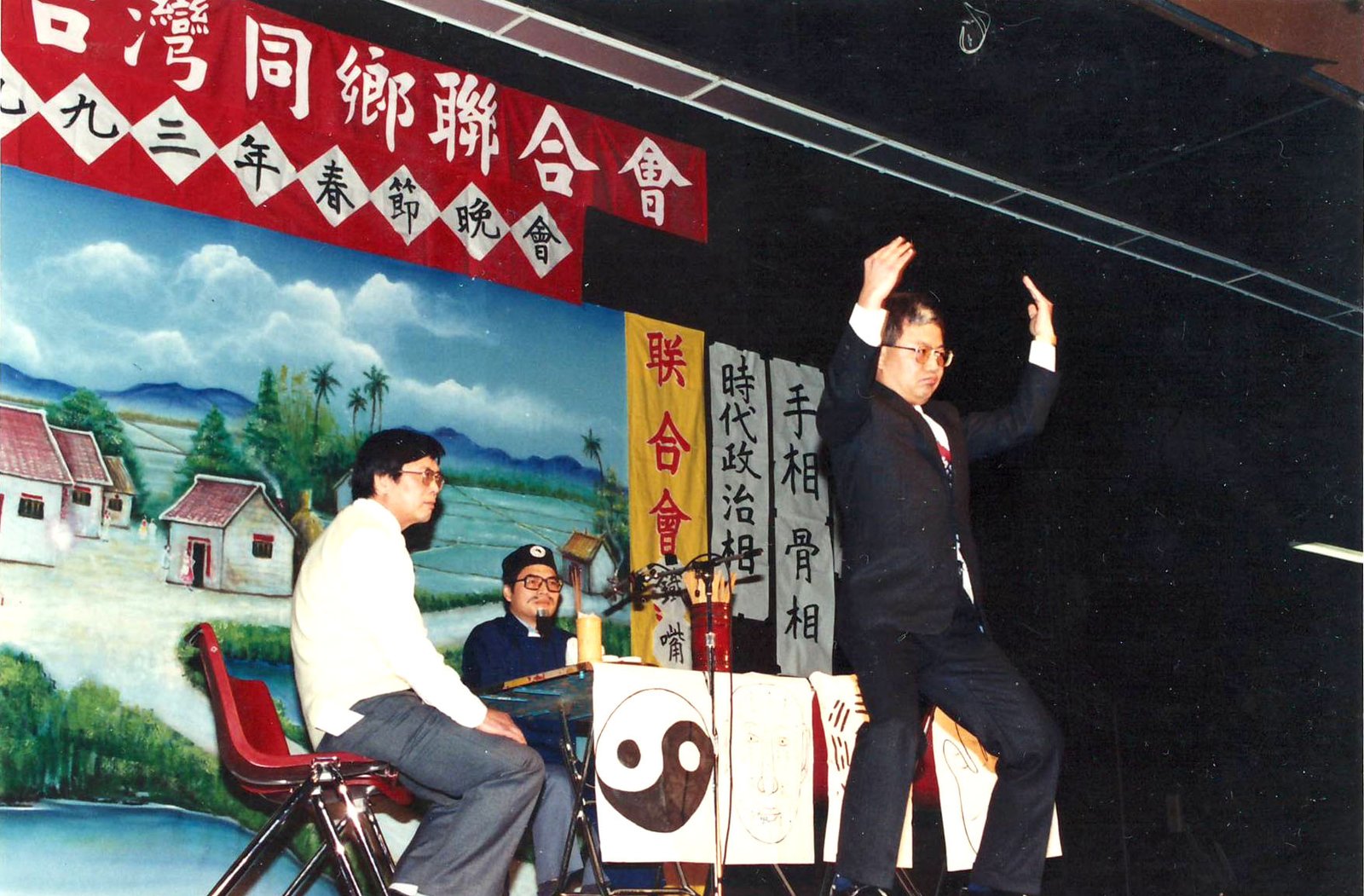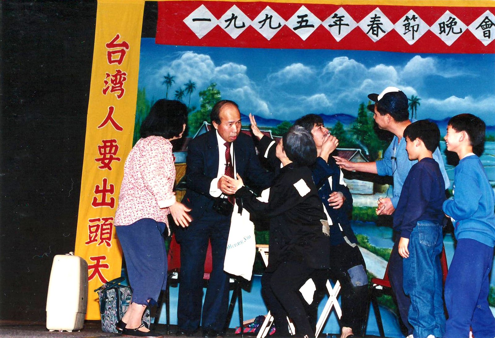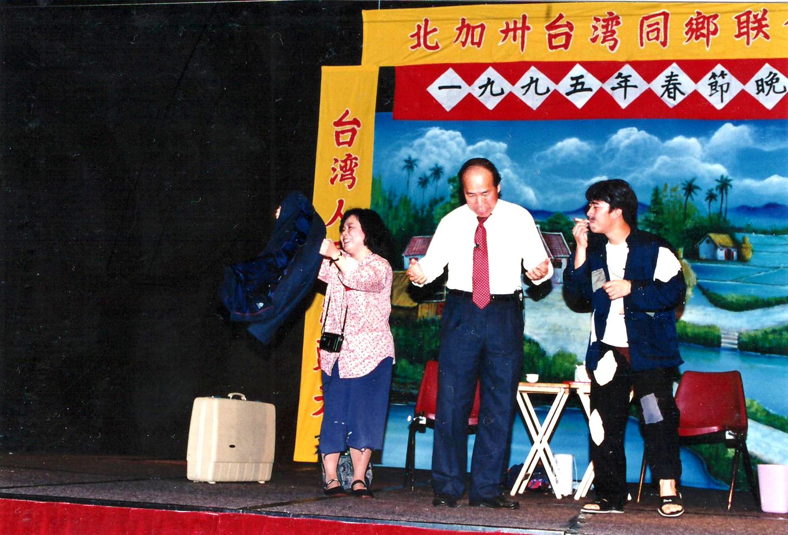 1996年1月27日演出《總統大選》。台灣第九任總統副總統選舉,於1996年(民國85年)3月23日舉行,為台灣首次總統公民直選。角逐總統者: 李登輝、彭明敏、林洋港、陳履安。1964年彭明敏與謝聰敏和魏廷朝共同起草著名的「台灣自救運動宣言」, 致力台灣民主改革,自成為海外台灣人的首選。