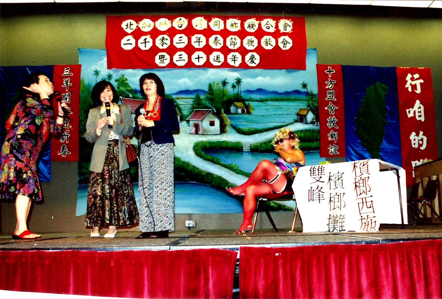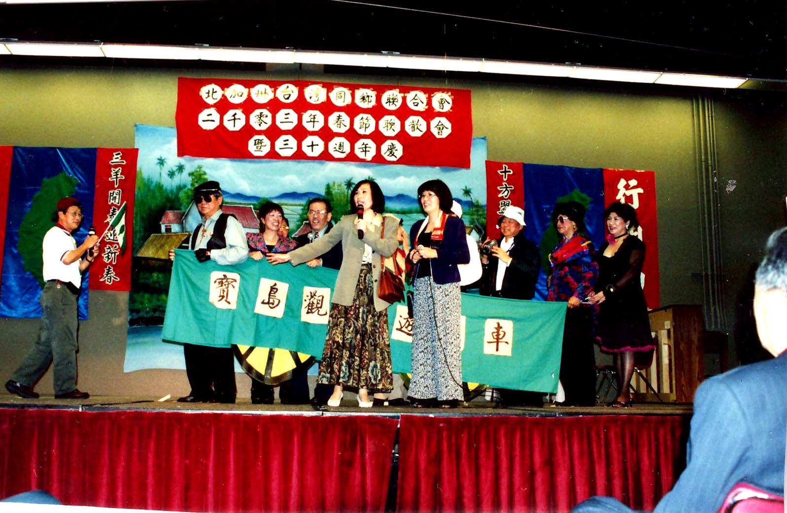 2003年1月25日演出《回台旅遊記》全美婦女會舊金山公演。2000年1月29日在選前演出《真假蕃薯記》之後,這齣戲是在台灣首次台灣執政之後,推出的第一齣戲劇,難得一齣輕快明朗的戲劇。